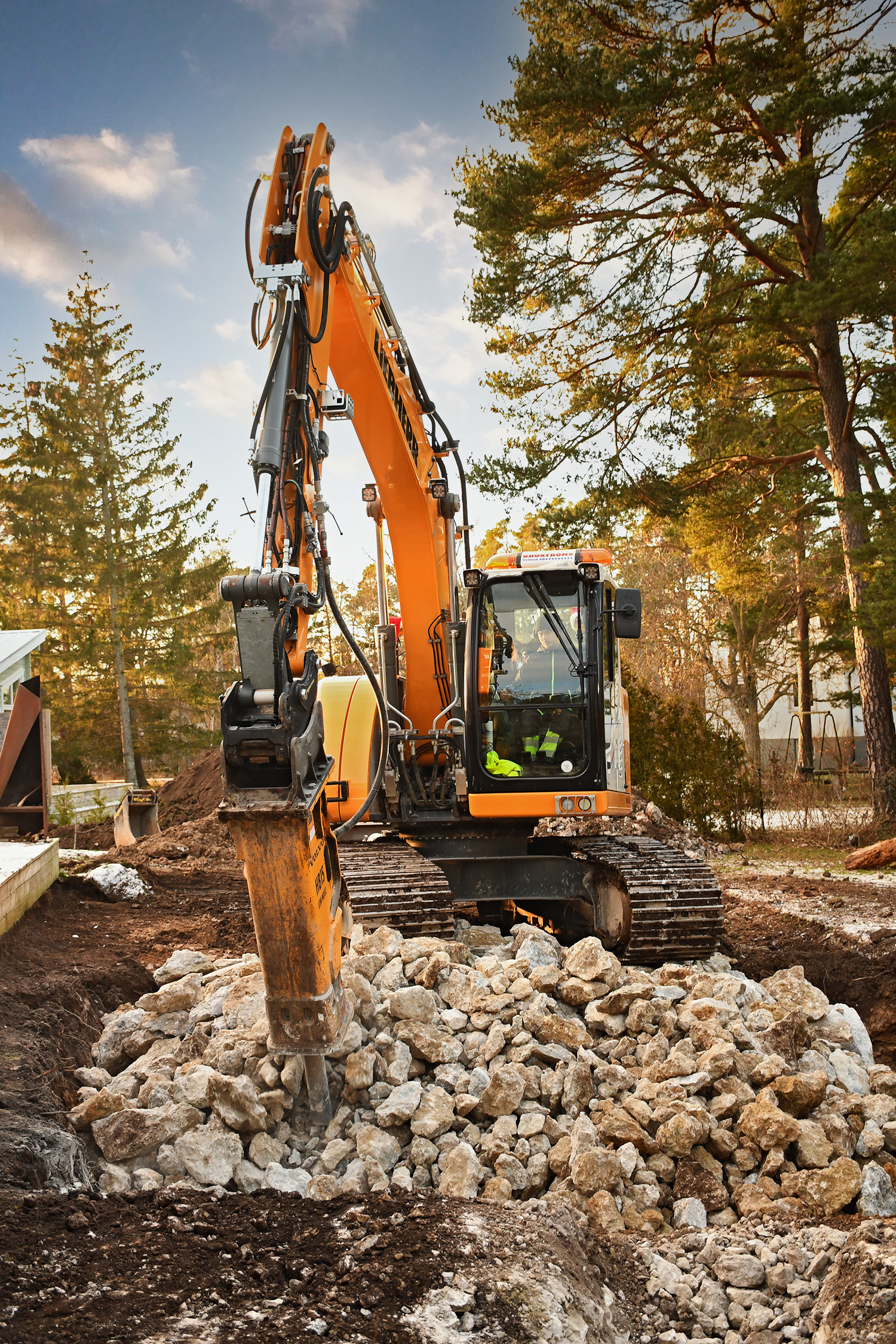 – Det är omväxlingen och att man får vara ute. Men det bästa är att det är så kreativt. Jag är inte intresserad av att köra i en gruva eller liknande. Jag gillar att skapa något fint. Som här till exempel, just nu ser det ut som kriget, men till sommaren finns en pool här och det kommer att bli riktigt bra.