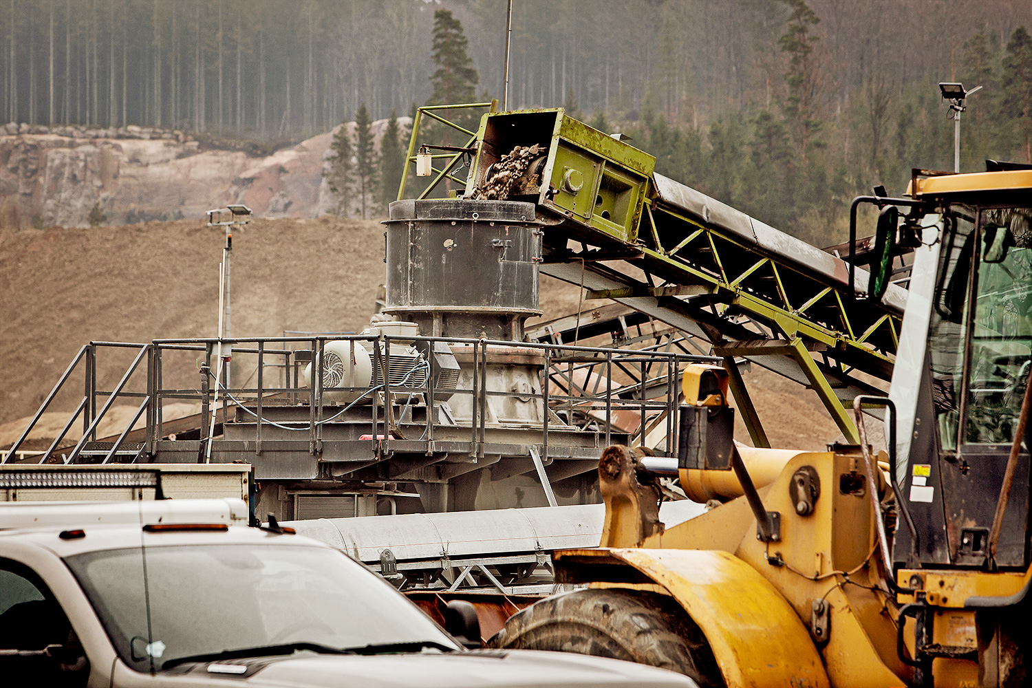 – Detta är vår enda så kallade entreprenaddel i företaget, att vi erbjuder skötsel och underhåll också. Vi underhåller ungefär 45 mil väg här. Det är jag som kör hyveln, det är riktigt.
