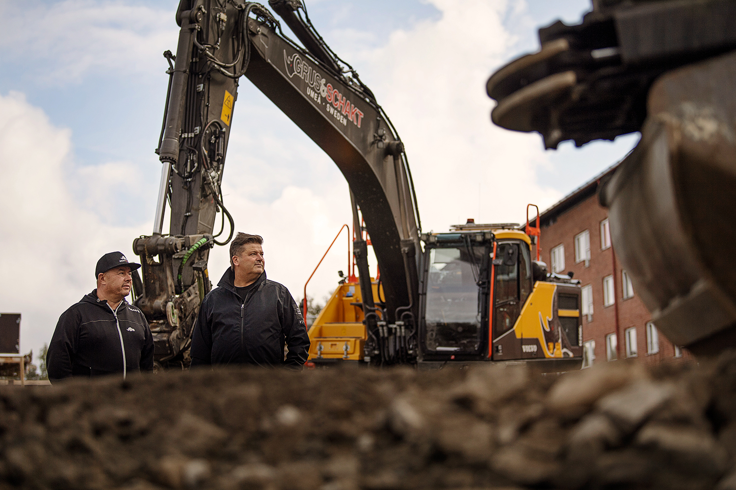 Inför det här reportaget föreslår tidningen att vi ska ses på Grus & Schakts ”huvudkontor” på Mätarvägen 19 i Umeå. Här ligger kontorslokalerna, uppställningsytor för maskiner, serviceverkstad med mera. Men här är inte mycket verksamhet. Maskiner är ute, vd är ute, platschef är ute, kontor och administration har en extern aktör tagit över. Faktum är att det är ganska tyst här. Nästan lite tomt.