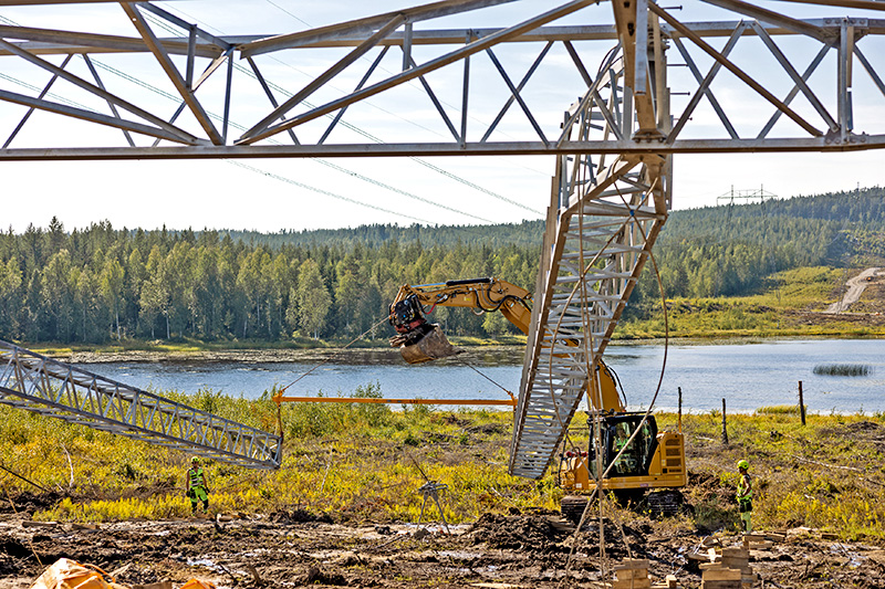 Det krävs inte mycket fantasi för att förstå projektets omfattning. Väder och vind…Bara det! I obebodd skogsmark ska det schaktas och grusas byggvägar (längs hela sträckan) för att få in de 5 700 ton stål till stolpar (som ska byggas på plats som ett slags Mekano) som sedan ska placeras på exakta platser (lyftas med kran) – på centimetern på de fundament där entreprenörerna tidigare har löst knepiga schakter och gjort klart för att platsgjuta i betong eller finlira med prefabricerade betongfundament. Och: Det ska grävas ner en ”jordlina” på 60 centimeter djup längs sträckan.