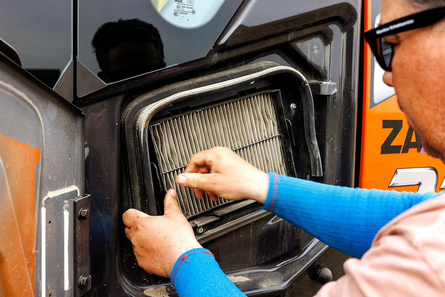 Maskinen har bra och lättåtkomliga servicepunkter. Smidigt att fylla centralsmörjningen genom att skjuta in en patron fett. Här slipper man ju såklart släpa runt på en spann med fett för att fylla på. Lätt och smidigt att fylla på AdBlue. Tillverkaren har tänkt till.