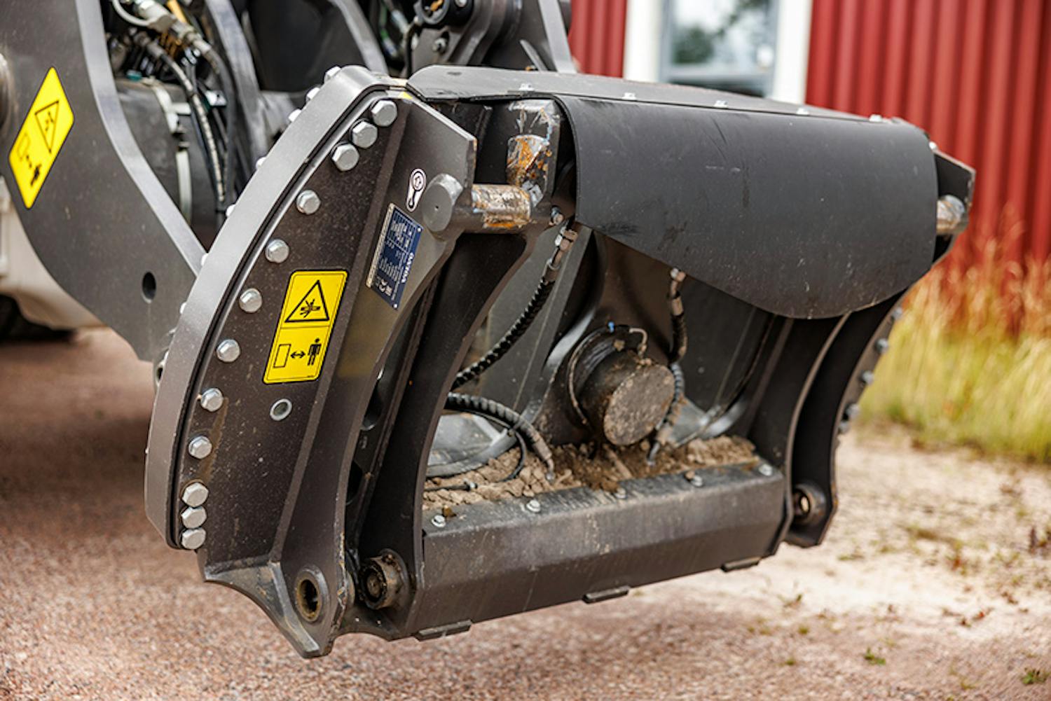 Motor/drivlina: Maskinen svarar mycket starkt och direkt på gaspådrag. Kör föraren rätt så sparar man mycket diesel. Något jag trivs med är att gasen i den här maskinen har två lägen. Första läget går det mjukt och andra är det trögt. Maskinen växlar bra när man ska köra i väg även med full skopa. Testade att bära bergkross några sträckor. Med sju ton i skopan bär det i väg utan problem – även uppför backe.